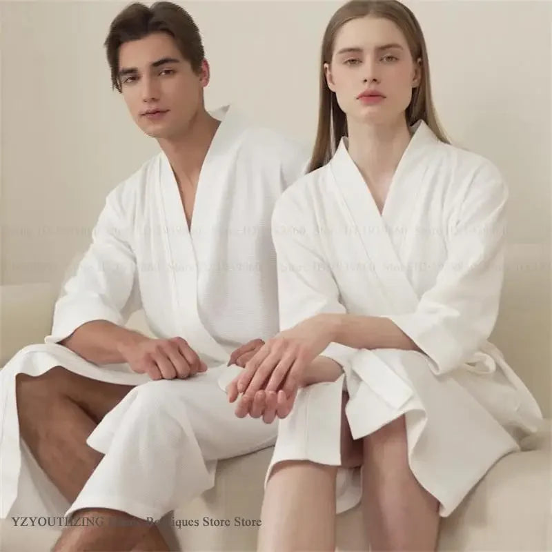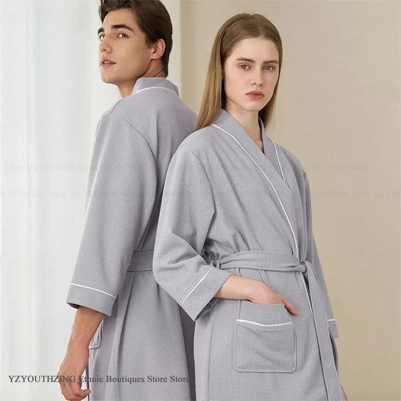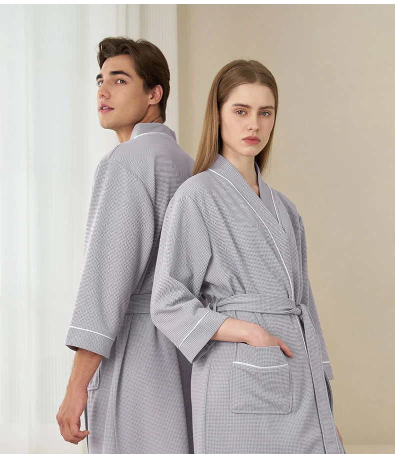 Waffle Kimono Bathrobe – Absorbent Couple Loungewear Robe
